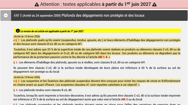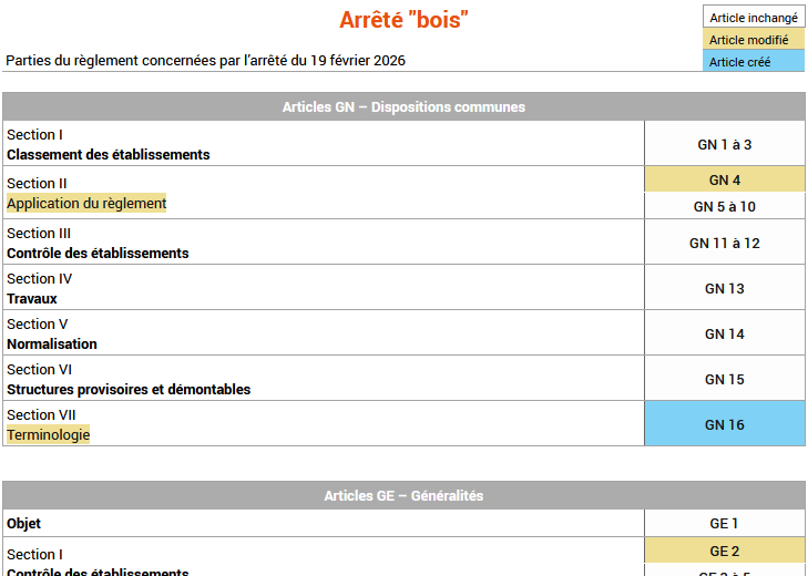 Ainsi la réglementation en vigueur est en affichage immédiat et le lecteur qui souhaite connaître les modifications portées par l'arrêté « Bois » peut y accéder en un clic sur le lien surligné.