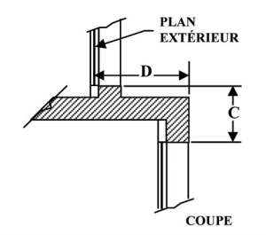 La valeur D est mesurée en supposant que la façade de l'étage inférieur est dans le même plan que celle du nez de plancher de l'étage supérieur. D n'est pris en compte que si sa valeur est supérieure ou égale à 0,15 m.