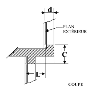 La valeur de cette avancée L n'est à prendre en compte dans le D qu'au-delà de 0,80 m et la valeur du retrait d n'est prise en compte dans le calcul de D qu'à partir de 0,15 m :