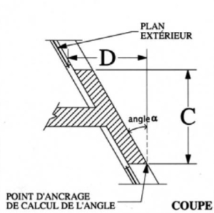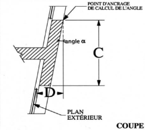 Si α ≤ 15° : on applique les règles de façades, on mesure C selon la verticale et D est égal à 0.