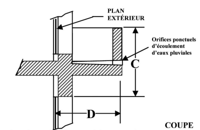 Ils sont pris en compte pour la mesure de C s'ils répondent aux exigences du paragraphe 1.2.1. Toutefois, des orifices ponctuels d'écoulement d'eaux pluviales, de diamètre maximal de 80 mm, peuvent traverser ces garde-corps.