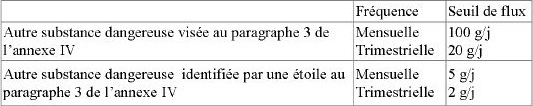 Les substances dangereuses marquées d'une * dans les tableaux ci-dessus sont visées par des objectifs de suppression des émissions et doivent en conséquence satisfaire en plus aux dispositions de l'article 22-2-III de l'arrêté du 2 février 1998 modifié.