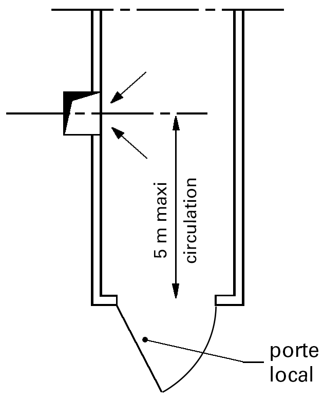 Dans les zones en cul-de-sac, la distance maximale entre une bouche d'extraction de fumée ou de soufflage et la porte d'un local est de 5 mètres.