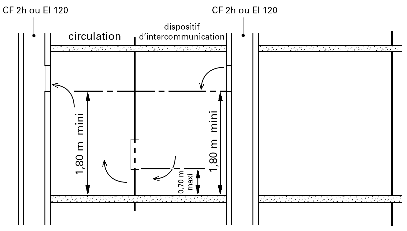 Figure 3b : Solution B. – Coupe circulation horizontale commune et dispositif d'intercommunication.